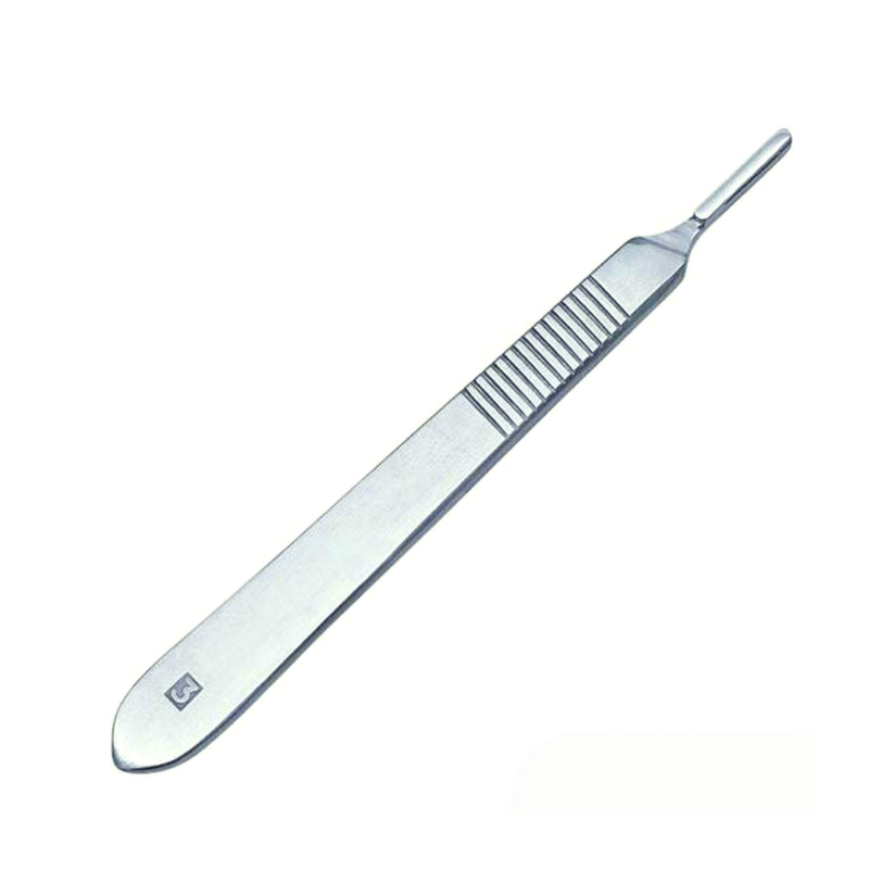 This is a reusable flat handle intended for combined use with surgical blades of varying shapes and sizes. The safety handle is designed for use with a conventional blade, and features a protective sheath to minimize risk to the surgeon and assistant while passing instruments.